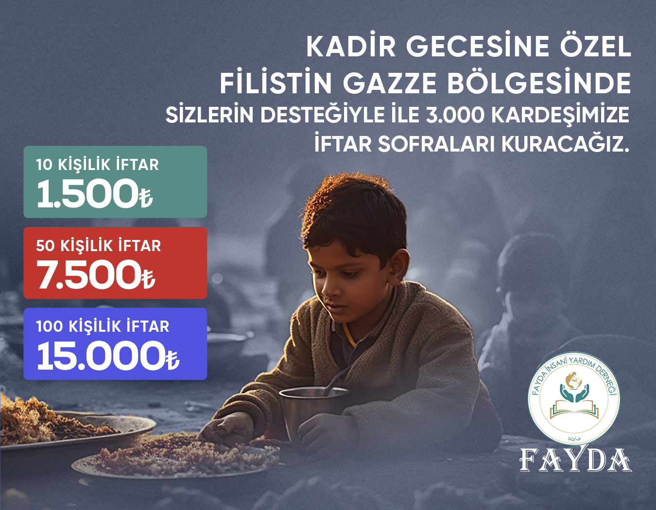 Yardımım şeffaflıkla gerçek ihtiyaç sahiplerine ulaştırdılar. Rabbim Fayda Derneğinde emeği geçen kim varsa razı olsun inşallah. İyi ki varsınız...