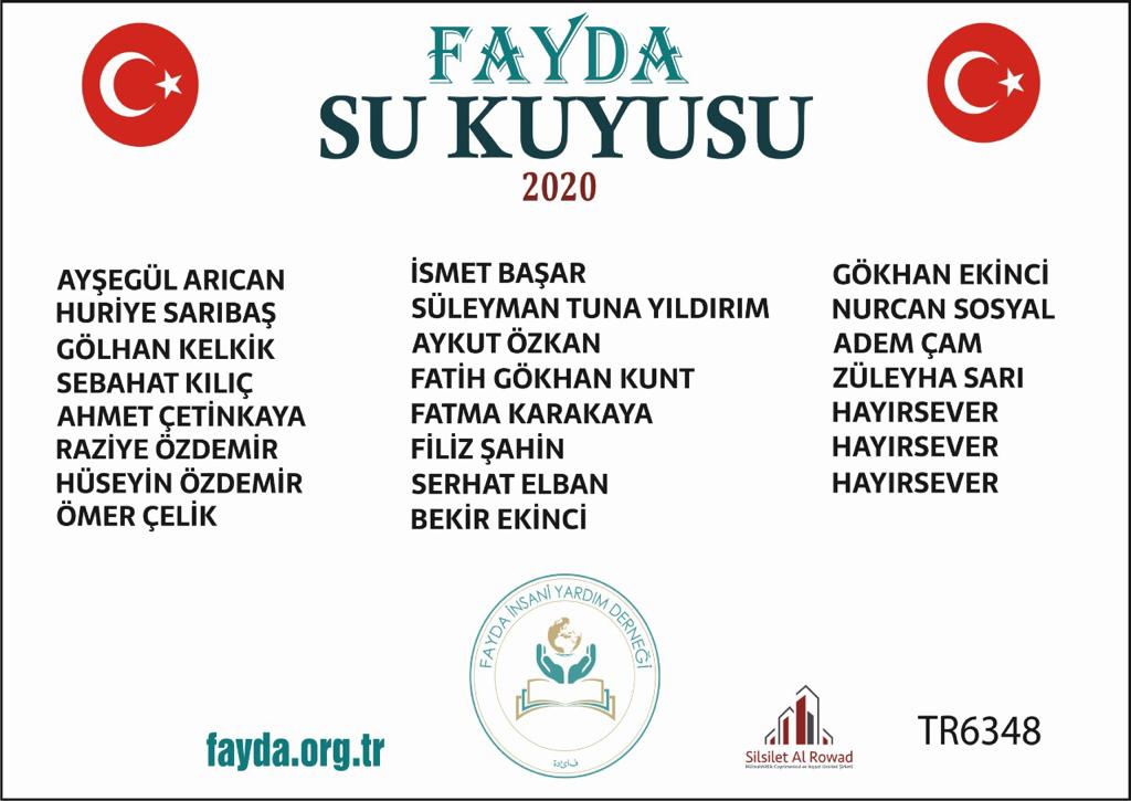 Fayda İnsani Yardım Derneği Olarak Çıktığımız Bu Yolda Dünya Üzerinde Birçok Bölge De Temiz Suyun Olmadığını Ve İnsanların Kirli Suyun Neden Olduğu Hastalıklar Sebebiyle Yaşamlarını Yitirdiklerini Gözlerimizle Gördükten Sonra Su Sıkıntısı Çeken Her Müslüman Mahalleye Su Kuyusu Açmayı Hedefledik. Bu Gayede Bizi Yalnız Bırakmayan Kıymetli Yardımseverlerimize Teşekkür Ediyoruz.